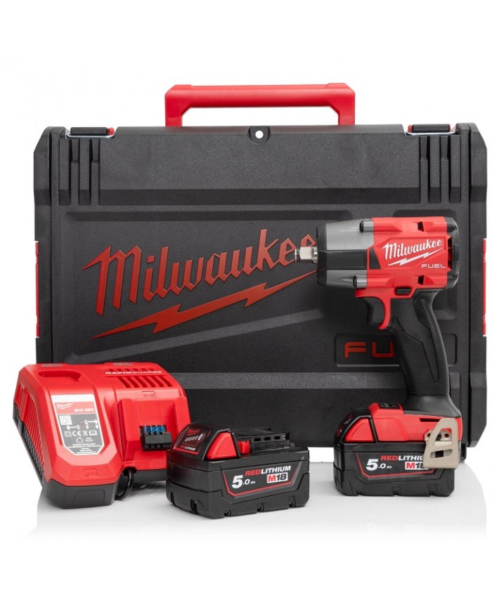 - Vijačnik M18 FMTIW2F12-502X je opremljen z dvema 5.0 Ah baterijama, hitrim polnilnikom in kovčkom,