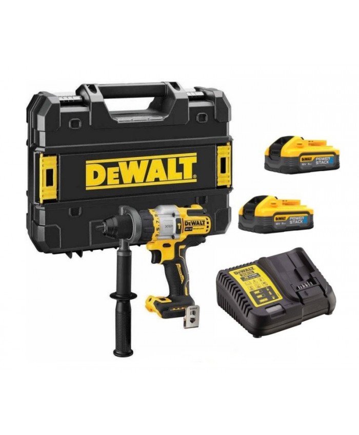 - Oprema Dewalt DCD999HT2 vsebuje 2x 5.0 Ah Powerstack akumulator DCBP518 in hitri polnilnik za akumulatorje DCB1104.