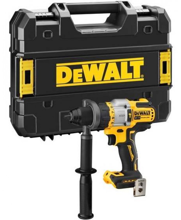 Oprema Dewalt DCD999NT vsebuje zaponko za pas, magnetno držalo nastavkov, večpozicijski stranski ročaj in trpežen TSTAK kovček. Baterija in polnilnik nista priložena.
