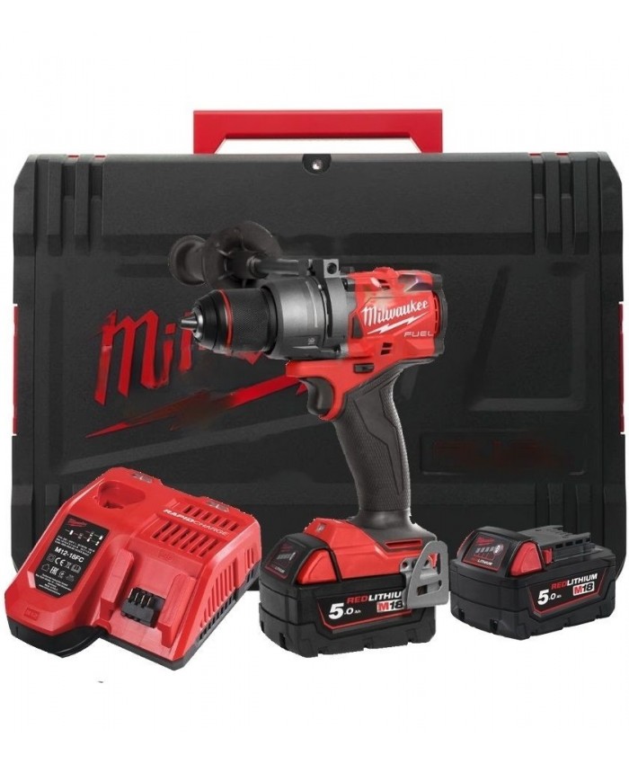 - Milwaukee M18 FPD3-502X pride v kovčku opremljen z 2x 5.0 Ah Li-Ion akumulatorjema ter hitrim polnilnikom.