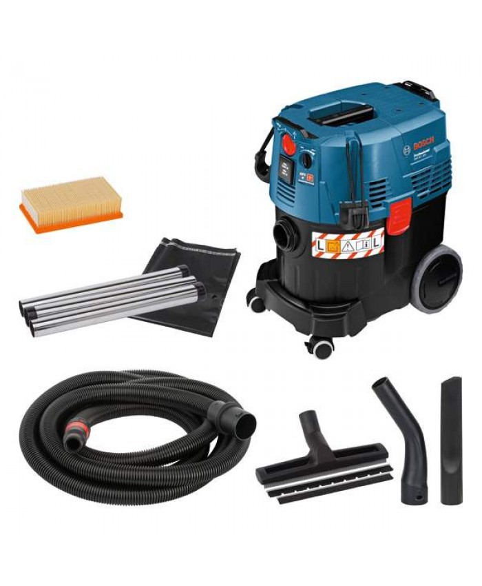 - Bosch GAS 35 L AFC Professional je visoko zmogljiv mokro/suhi industrijski sesalnik z naprednim samodejnim čiščenjem filtra (AFC). Ta funkcija omogoča stalno sesalno moč, kar zagotavlja neprekinjeno in učinkovito delo brez potrebe po ročnem čiščenju filtra. S tem se povečuje produktivnost in zmanjšuje stroške vzdrževanja, kar je še posebej pomembno pri dolgih projektih na gradbiščih ali v delavnicah.