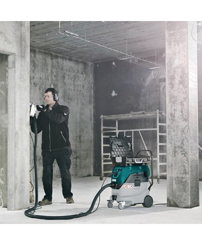 Sesalnik MAKITA VC4210LX za suho/mokro sesanje, z funkcijo samodejnega čiščenja filtra, avtomatskim vklopom/izklopom z uporabo orodja in novim PTFE filtrom, z priročno vtičnico za orodje ter nastavljivo močjo sesanja.