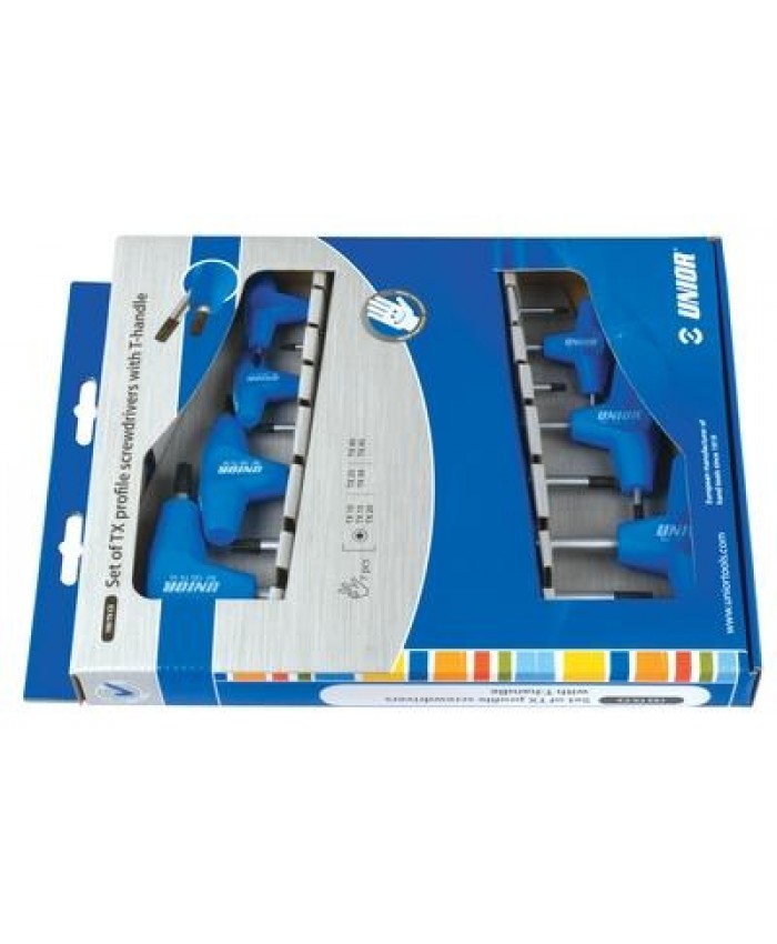 - V garnituri 7 kosov izvijačev s TORX profilom na T ročaju Unior 193TXCS.