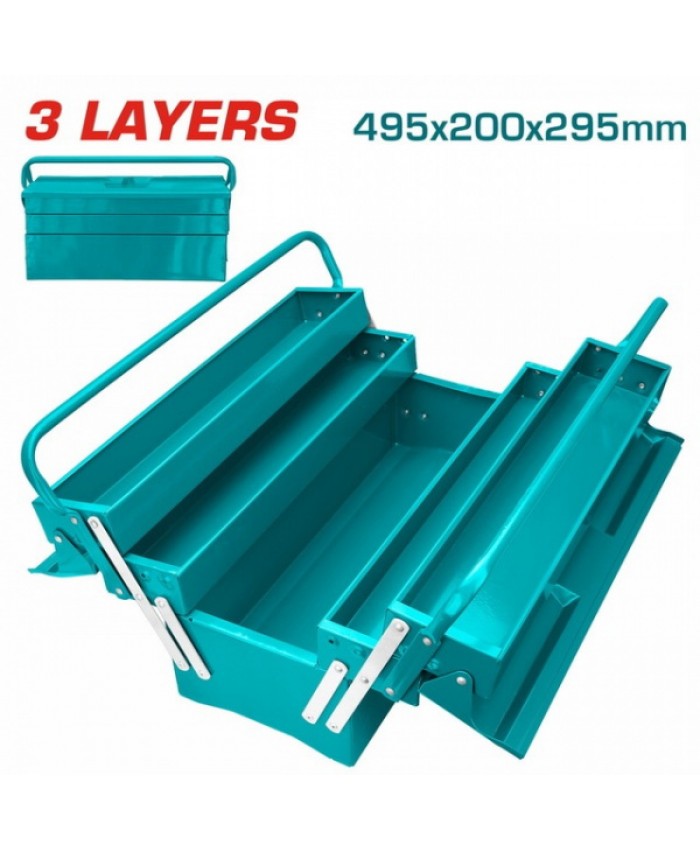 Velikost škatle je 495*200*295 mm. Ima 5 odsekov, razporejenih v 3 nivoje, kar omogoča pravilno sortiranje in shranjevanje različnih orodij.