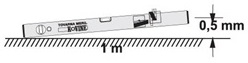 - Natančnost libele je 0,5mm/m v normalni legi - to pomeni, da je pri 1 meter dolgi libeli maksimalna možna napaka vodoravnosti 0,5mm na eni ali drugi strani ob pogoju, da je mehurček v libeli točno na sredini markirnih obročkov,