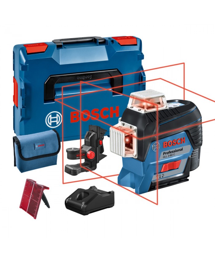 - Orodje GLL 3-80 C Professional je opremljeno s sistemom dvojnega napajanja, zato ga je mogoče uporabljati z 12 V litij-ionsko akumulatorsko baterijo ali običajnimi alkalnimi baterijami, kar še poveča njegovo vsestransko uporabnost.