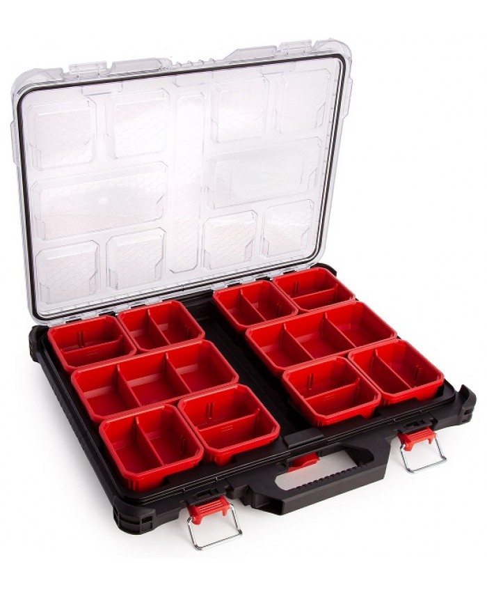 - Notranjost vsebuje 2 velika zabojnika in 8 majhnih zabojnikov. Vsi zabojniki vsebujejo razdelilnike.