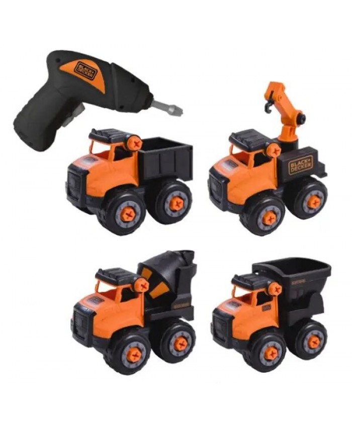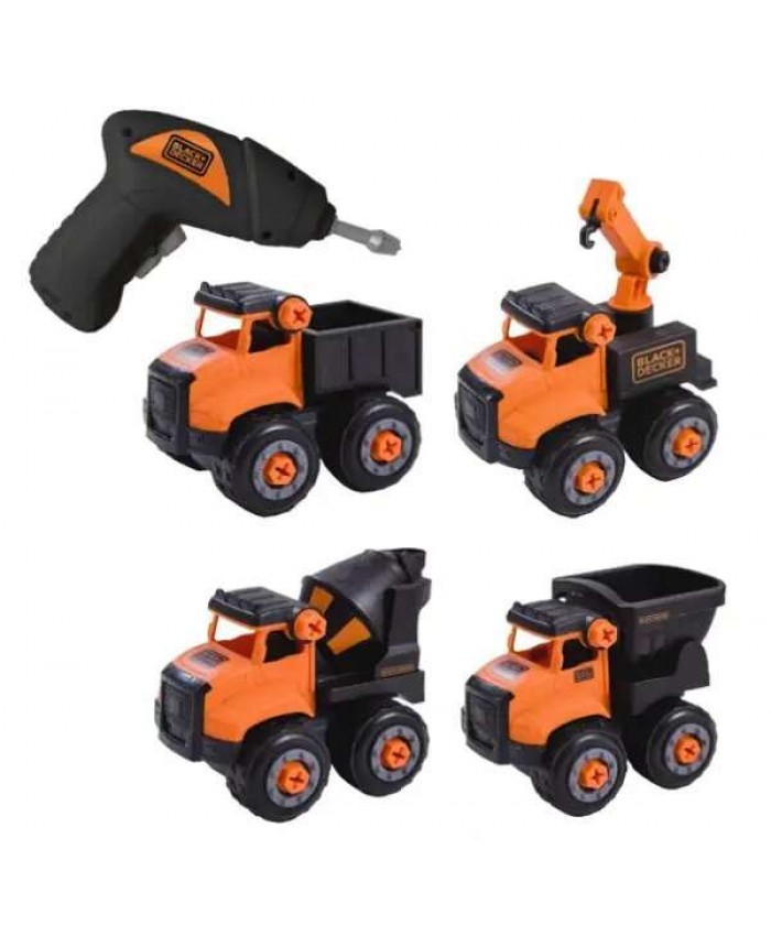 Ta komplet 4 razstavljivih tovornjakov Black+Decker je odlična izbira za otroke, ki obožujejo gradbena vozila in sestavljanje! Priložen baterijski vijačnik, prilagojen majhnim rokam, omogoča enostavno sestavljanje in razstavljanje vozil, kar spodbuja učenje skozi igro.