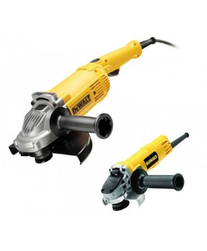 Komplet 2 kotnih brusilnikov DeWalt DWE492DUO2 je sestavljen iz velikega kotnega brusilnika DWE492 z močjo 2200 W in 230 mm ploščo, ter malega kotnega brusilnika DWE4157 z močjo 900 W in 125 mm ploščo.