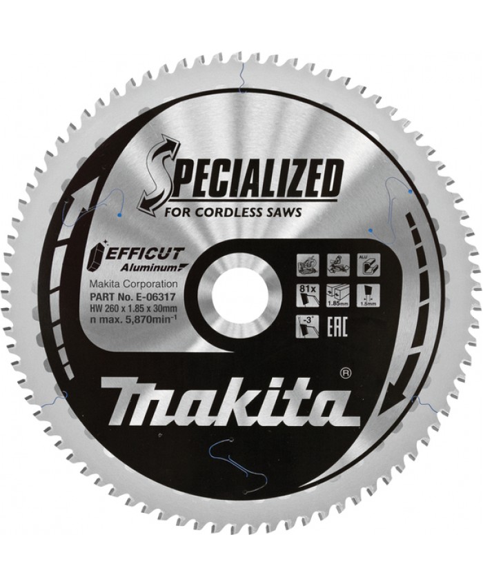 TCT Efficut žagin list za aluminij 260 mm (81 zob) 260x30x81Z Makita E-06317