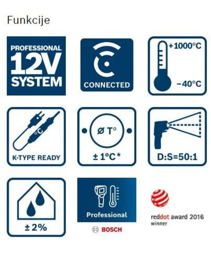 - Praktičen prenos in hranjenje podatkov v aplikaciji Bosch ThermalOn ali s pomočjo USB-kabla.