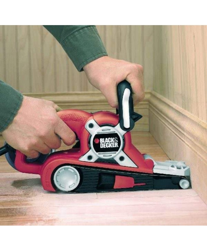 - Tračni brusilnik Black & Decker KA88 je idealen za obdelavo velikih površin, na primer tal ali mize.