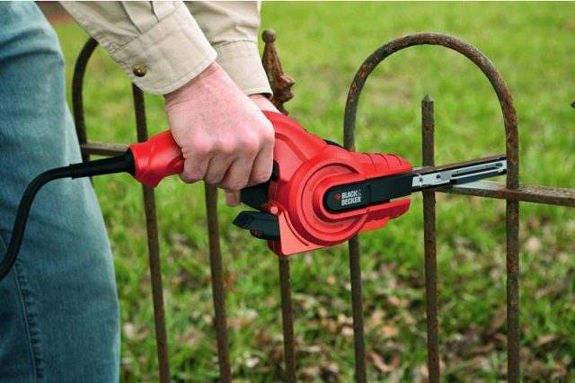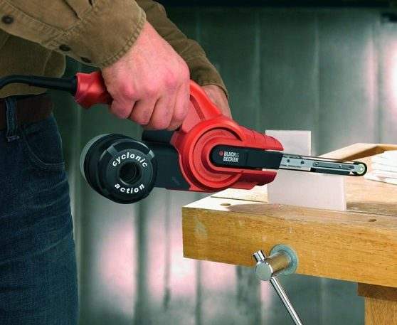 Ozki tračni brusilnik Black+Decker KA902EK je idealen za brušenje težko dostopnih mest.