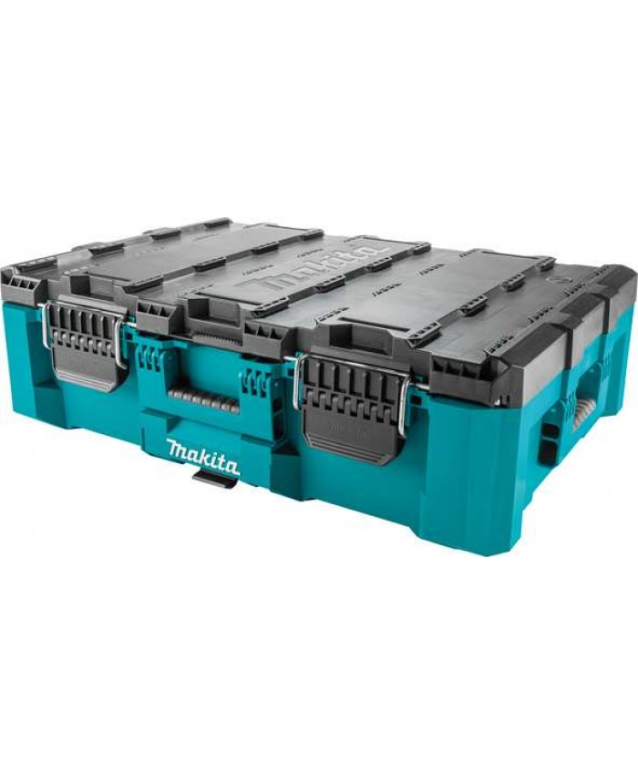- Kovček je kompatibilen s sistemom TRAK za hitro zlaganje in povezovanje z drugimi kovčki Makita, kar omogoča modularno uporabo.