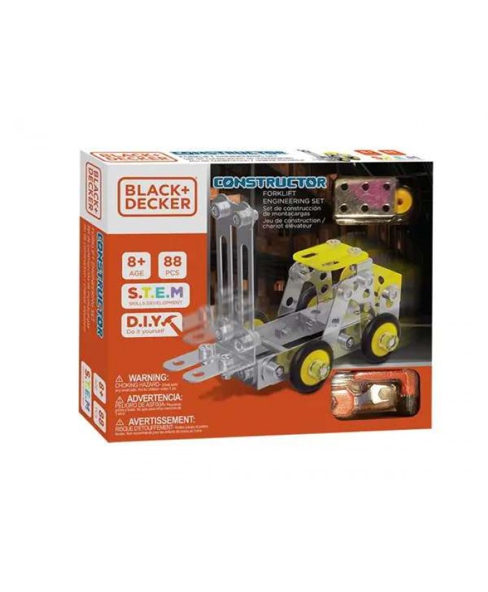 Viličar 75-delni set BLACK+DECKER je odlična izbira za male mojstre, ki radi sestavljajo in ustvarjajo. Med sestavljanjem otrok razvija motorične in ročne spretnosti, hkrati pa krepi logično razmišljanje. Ta interaktivna igrača spodbuja domišljijo, ustvarjalnost in sposobnosti reševanja problemov, zaradi česar bo igra še bolj zanimiva in poučna.