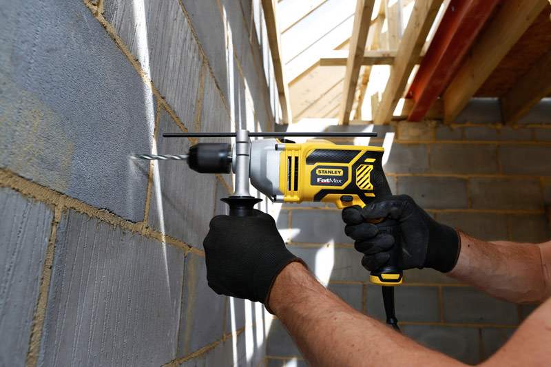 Udarno kladivo Stanley Fatmax FME140K je 750 W udarno kladivo s kovinskim menjalnikom in kompaktno 13 mm kovinsko samozatezno vpenjalno glavo z blokado vretena.